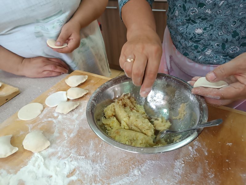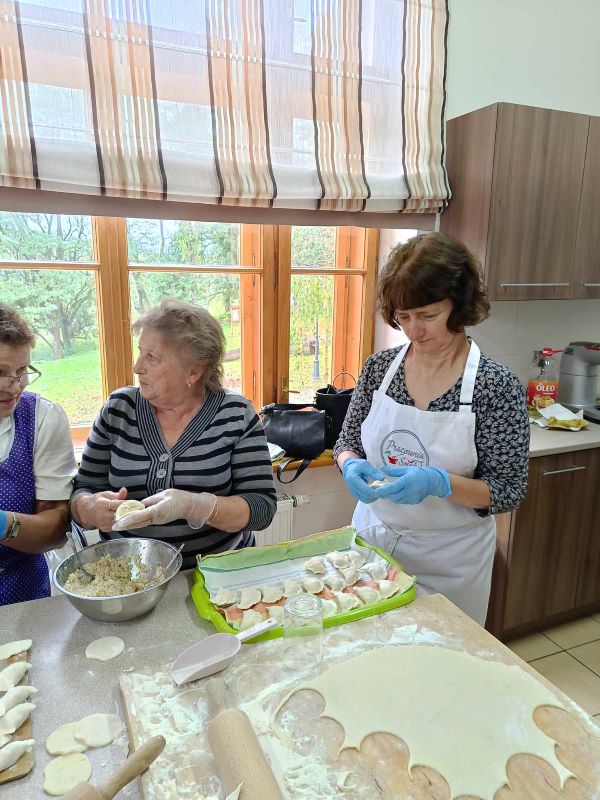 W trakcie warsztatów uczestnicy mieli okazję spróbować swoich sił w przygotowywaniu pierogów z trzema rodzajami farszu: z surowych ziemniaków, które od lat cieszą się popularnością na Podkarpaciu. Ich smak i prostota wykonania zachwyciły zarówno osoby, które po raz pierwszy miały do czynienia z kuchnią, jak i te bardziej doświadczone. Nie zabrakło również klasycznych pierogów ruskich oraz z kapustą i grzybami, inspirowanych tradycyjnymi, świątecznymi potrawami, które zachwyciły swoją aromatyczną nutą i charakterystycznym smakiem.