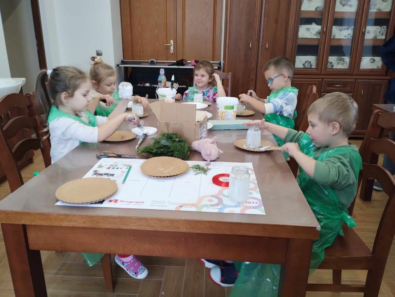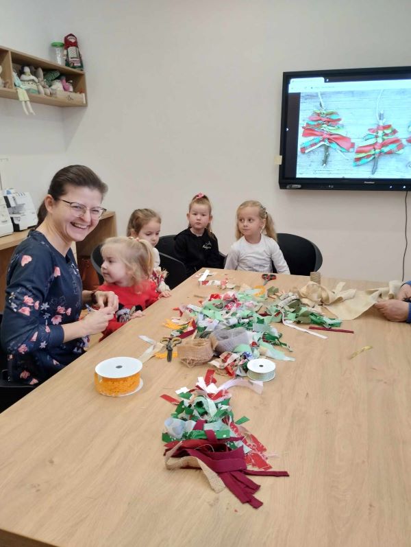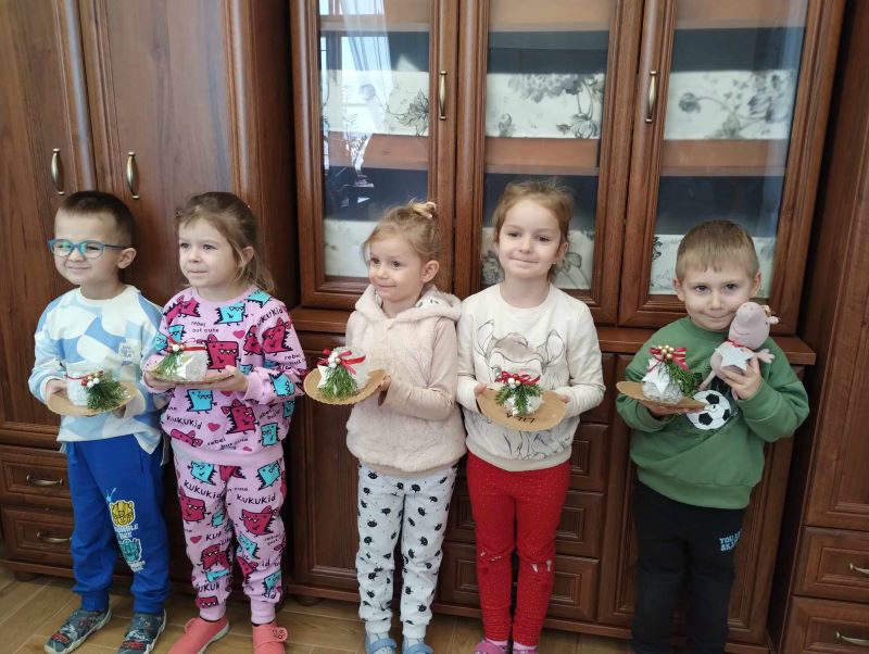 Nic tak nie cieszy jak własnoręcznie wykonane prace. Domki z gliny, lampiony, choinki z kolorowych tkanin, to prace wykonane przez naszych małych gości, podczas integracyjnych warsztatów.