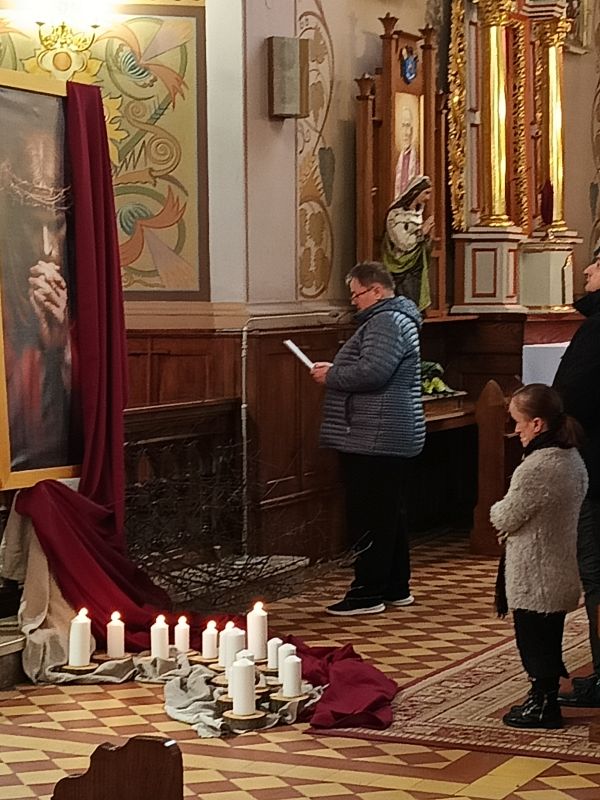 Nabożeństwo, które już na stałe wpisało się w kalendarz wspólnych spotkań, zostało zorganizowane przy współpracy z proboszczem izdebskiej parafii, księdzem Marianem Bądalelem. Uczestnicy ŚDS z dużym zaangażowaniem przygotowali oprawę Drogi Krzyżowej – czytania, rozważania oraz symboliczne elementy, które pomogły jeszcze głębiej przeżyć każdą ze stacji. Był to czas skupienia, modlitwy i refleksji nad własnym życiem.