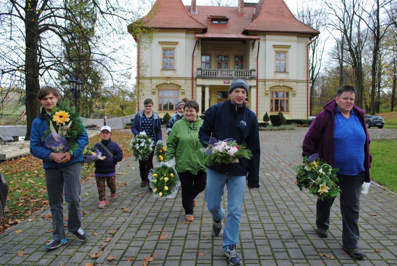 Okres poprzedzający 1 listopada to czas bardzo ważny dla naszych uczestników. Już kilka dni wcześniej podczas zajęć  terapeutycznych samodzielnie wykonywali stroiki na groby zmarłych kolegów i koleżanek ŚDS, które później wraz z symbolicznymi zniczami zostały złożone na ich grobach. Poprzez odwiedzanie grobów nie tylko w tym czasie ale również w ciągu roku, nasi podopieczni okazują pamięć o bliskich. Jak zawsze złożyli również kwiaty przed Grobem Nieznanego Żołnierza oraz płk Jana Kazimierza Kamienieckiego herbu Pilawa.