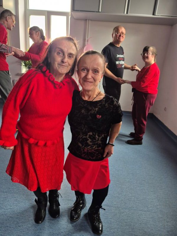 Spotkanie przebiegało w atmosferze radości, życzliwości i wzajemnej integracji. Na uczestników czekały konkursy walentynkowe, wspólne zabawy oraz tańce, które porwały wszystkich do aktywnego udziału. Sala wypełniła się muzyką, śmiechem i czerwonymi dekoracjami w kształcie serc, podkreślającymi wyjątkowy charakter wydarzenia.
