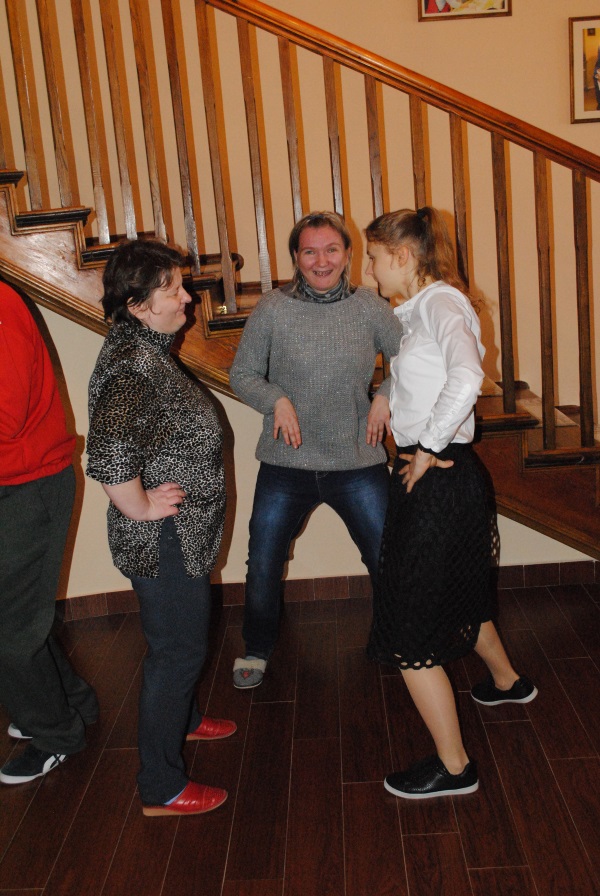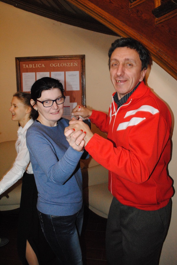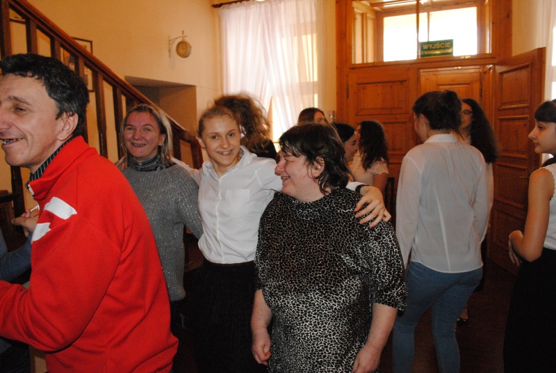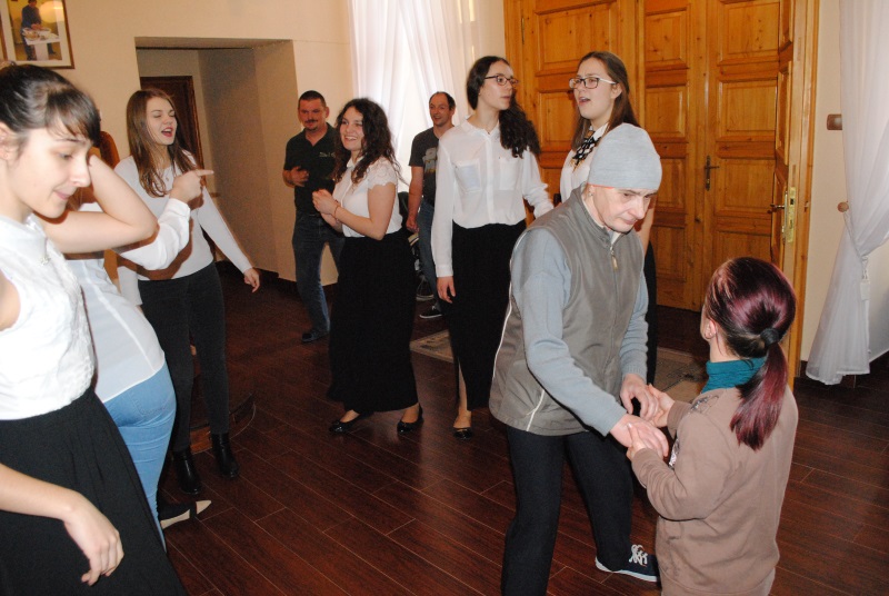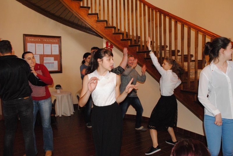 Zabawa zaczęła się od występów młodzieży zrzeszonej w Szkolnym Kole Wolontariatu, która przybliżyła nam staropolskie tańce takie jak polonez, krakowiak i kujawiak a także popularny i znany naszym uczestnikom „Taniec belgijski”. Grupa muzyczna zagrała nam kilka pięknych utworów na skrzypcach i flecie bocznym, po czym zaczęła się huczna zabawa. Uczniowie oraz nasi uczestnicy razem ruszyli na parkiet aby wspólnie tańczyć i szaleć przy muzyce disco polo.