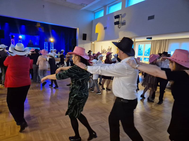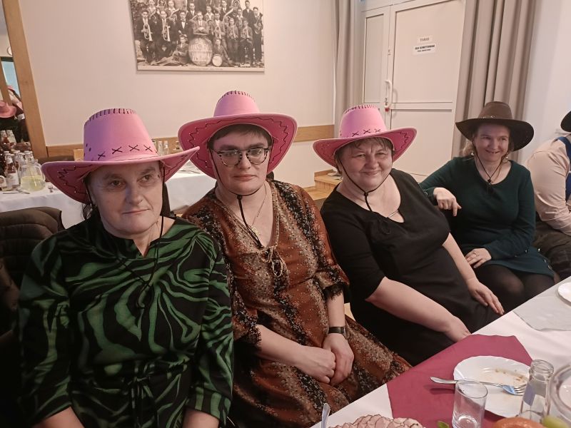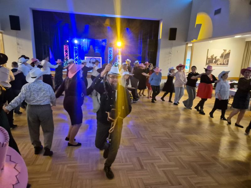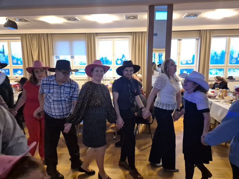 Oprawę muzyczną zapewniła DJ Olga, która przygotowała różnorodny repertuar muzyczny i poprowadziła wspólne zabawy taneczne. Jedną z największych atrakcji była zabawa z kowbojskimi kapeluszami, która wywołała wiele uśmiechu i radości. Kolorowe kapelusze dodały karnawałowego charakteru i stały się elementem wspólnej zabawy oraz pamiątkowych zdjęć.